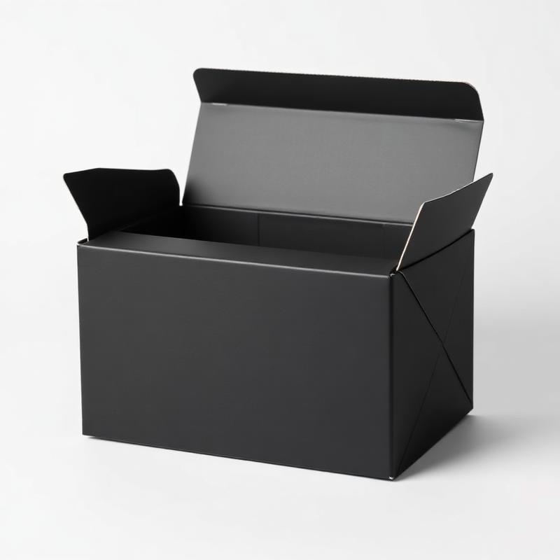 Sleek black folding gift boxes with magnetic closure. Soft-touch matte finish with gold foil logo option.