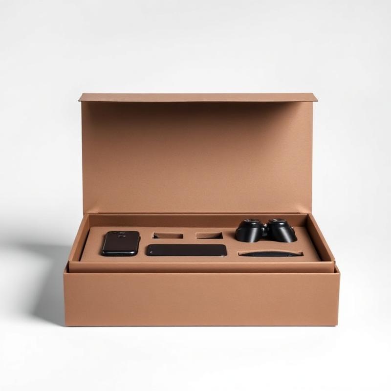 Premium packaging for electronic devices. Rigid construction with custom foam insert for product protection.