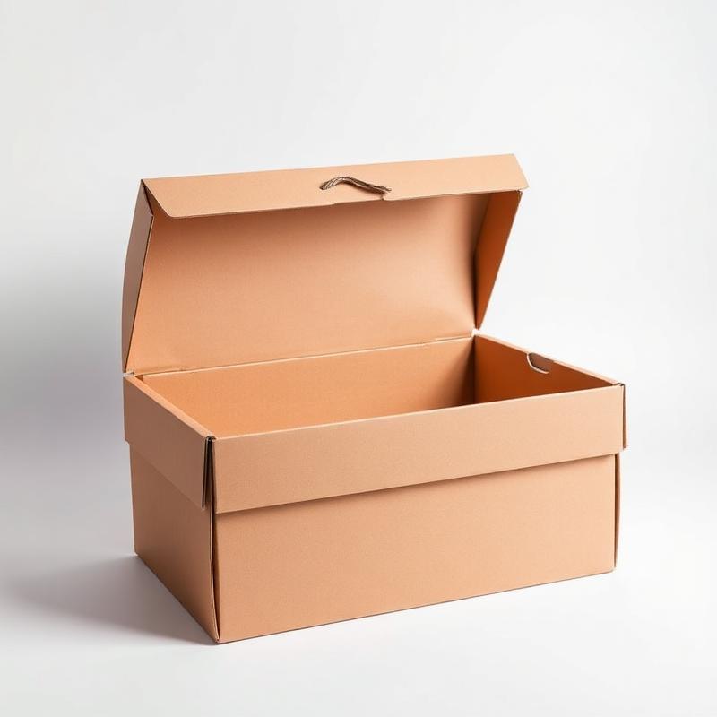 Custom shoe boxes with flip-top or slide-out mechanisms. Sturdy corrugated or rigid construction.