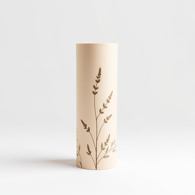 Elegant cylindrical packaging for skincare, perfume, and beauty products. Soft-touch finish with gold accents.