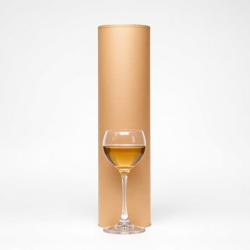 Protective paper tube for wine glasses and glassware. Reinforced construction with custom size and interior padding.